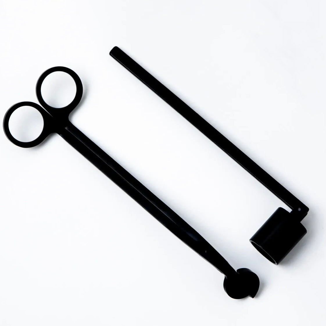 Our Candle Care Set is the ultimate kit for candle lovers, including a wick trimmer, wick snuffer, and black velvet bag in a white gift box to keep your candles burning beautifully.