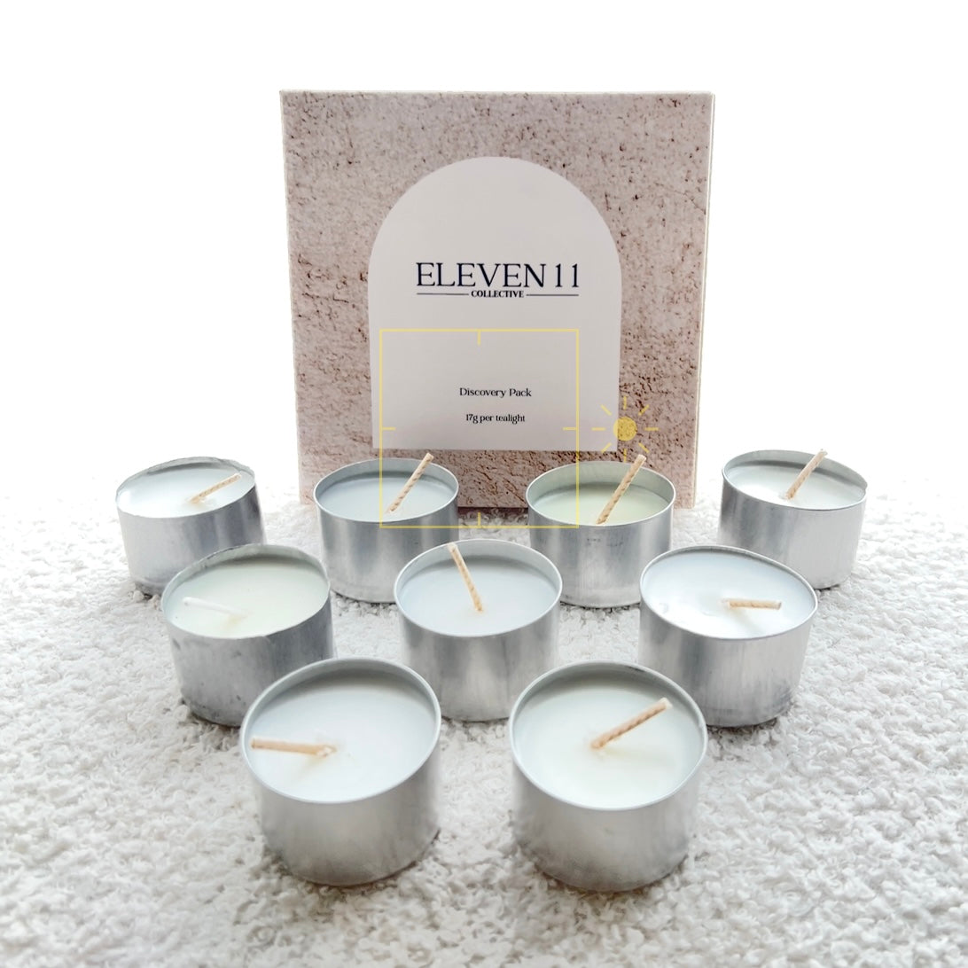 Designed for the curious souls and aficionados of fine fragrances, this sample box is a gateway to a world of aromatic exploration. Our Discovery Pack is meticulously curated to engage your senses, this exquisite collection features nine sample tealight candles, each showcasing a unique signature scent from our diverse range.